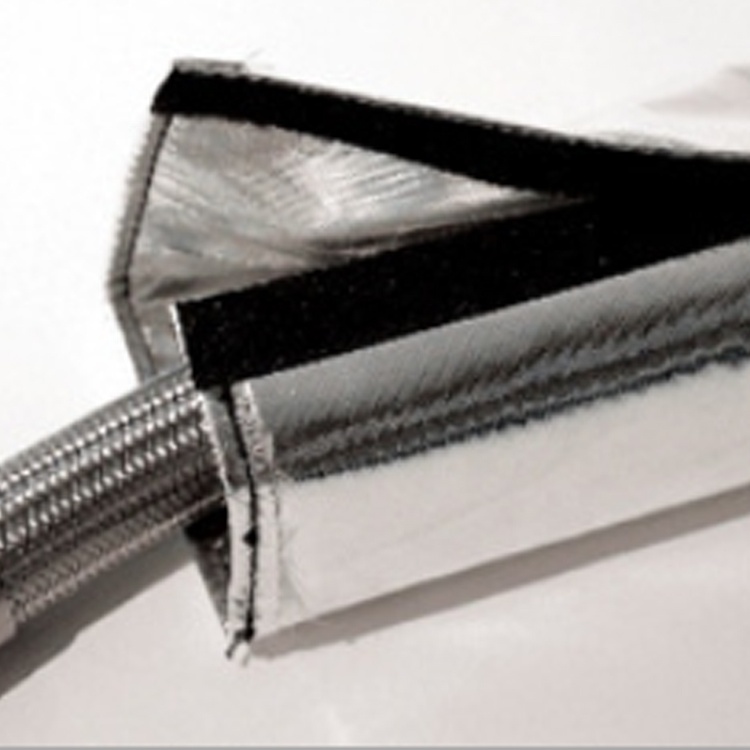 Aluminum foil fiberglass sleeve with velcro is constructed by slited aluminum foil glass fiber blanket,and then stitching the edges with velcro hook and loop closure. Excellent rediant heat reflection provides good protections to the hoses,cables,wires and such kind of pipelines,which are working under high heat conditions; Low heat conductivity to keep the underlying pipelines cool.