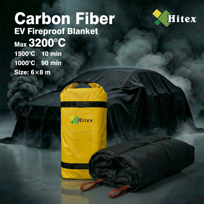 The BlackFire Carbon Fiber Fire Blanket is an advanced safety solution engineered for the unique challenges of new energy vehicle (NEV) fires. It is constructed from a heavy-duty, woven fabric made of 20S/4 carbon fiber yarn. The blanket offers superior thermal protection, mechanical performance, and flame-suppressing capabilities, making it an essential tool for emergency response scenarios involving lithium-ion batteries and high-temperature fires. Its high Limiting Oxygen Index (LOI) indicates exceptional flame retardancy.